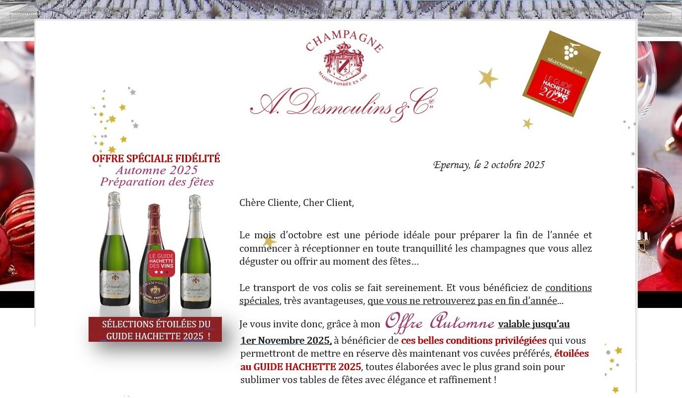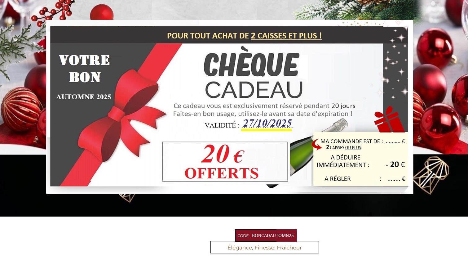 Slide Slide ![]() L'ABUS D'ALCOOL EST DANGEREUX POUR LA SANTÉ. A CONSOMMER AVEC MODÉRATION CHAMPAGNE ![]() ![]() Livraison partout